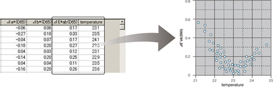 | 色空間 | L*a*b*, L*C*h, Lab99, LCh99, XYZ, Hunter Lab, Yxy, L*u'v', L*u*v*及其色差; Munsell (C, D65) |