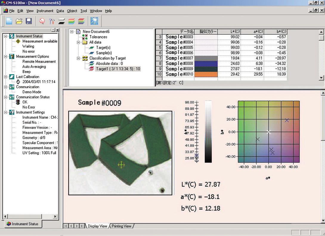 SpectraMagic?NX允許您在測量數(shù)據(jù)中插入數(shù)字圖片,并精確標(biāo)記測量光點,因此全面打開了客戶和供應(yīng)商之間的色彩交流新空間。 數(shù)據(jù)列表視圖允許您使用復(fù)制和粘貼功能快速導(dǎo)出測量數(shù)據(jù)為Excel格式。 可使用“拖放”方式將任何圖形復(fù)制到電子表單上。 可自定義報告,以滿足終端用戶需求的格式顯示色彩數(shù)據(jù)。 另外,SpectraMagic?NX可在局域網(wǎng)(LAN)內(nèi)共享數(shù)據(jù),并可在Windows 98, SE, NT4, 2000 Professional 和 XP Professional系統(tǒng)下進(jìn)行操作。