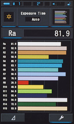 CL-70F可輕松處理CRI測量數(shù)據(jù)。其通過簡單的條形圖顯示包括所有單獨(dú)指數(shù)(R1至R15)在內(nèi)的Ra值。